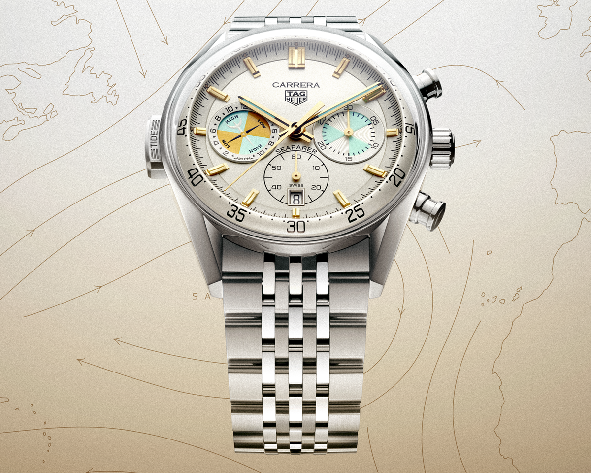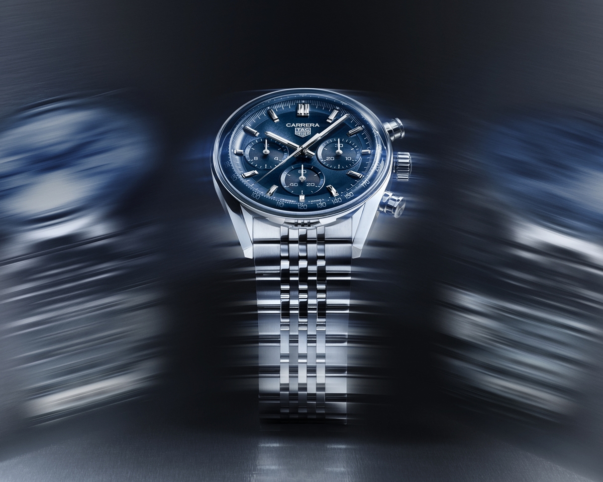 3월 초에 진행된 런던 프리미어 행사에서는 버건디 컬러의 스트라이프 수트 셋업과 셔츠에 앨리게이터 레더 벨트와 까레라 크로노그래프 씨페어러 모델을 착용해 화려한 분위기를 자아냈다. 까레라 크로노그래프 씨페어러는 지난 1월 LVMH 워치위크에서 공개된 모델로, 샴페인 다이얼과 민트 컬러 포인트가 돋보인다. 타이드 인디케이터가 탑재돼 조수간만 차를 확인할 수 있다.