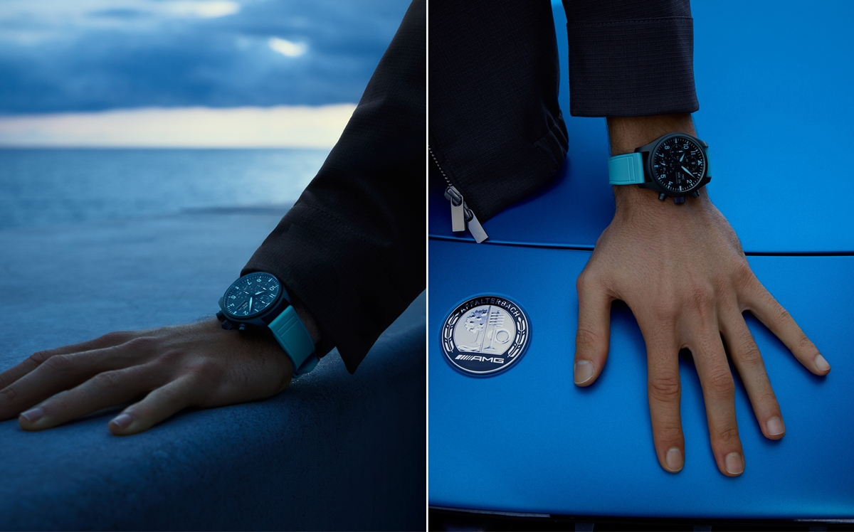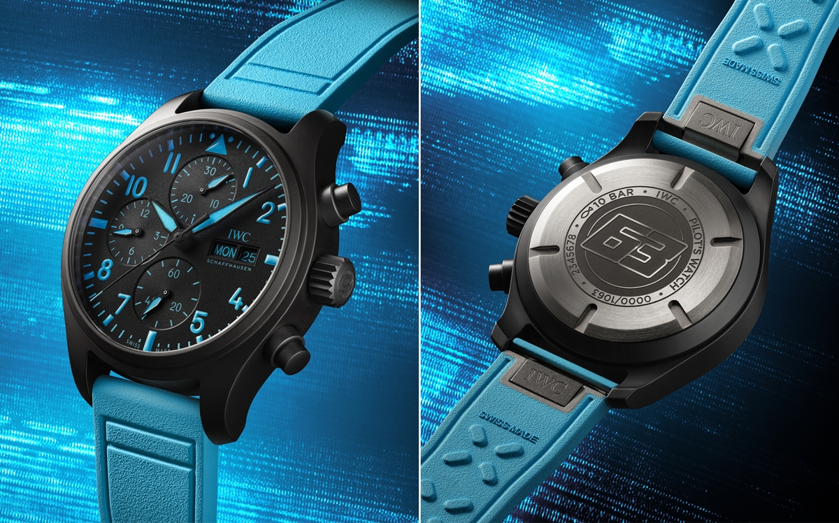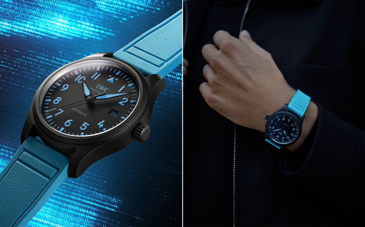 신제품은 파일럿 워치 크로노그래프 41과 파일럿 워치 오토매틱 41 모델의 두 가지 버전으로 구성됐다. 두 모델 모두 블랙 세라믹 케이스를 기반으로 러셀의 시그너처 블루 컬러를 조합해 완성했다.