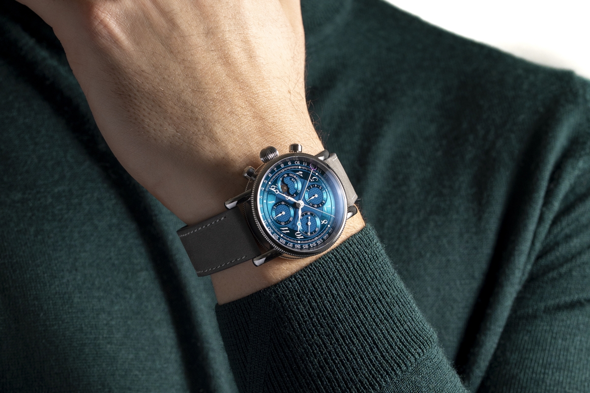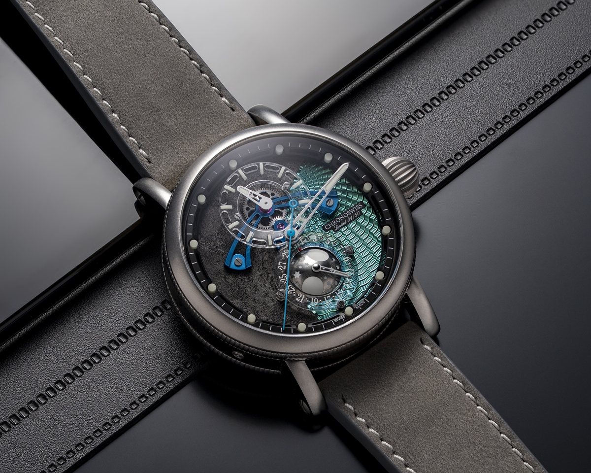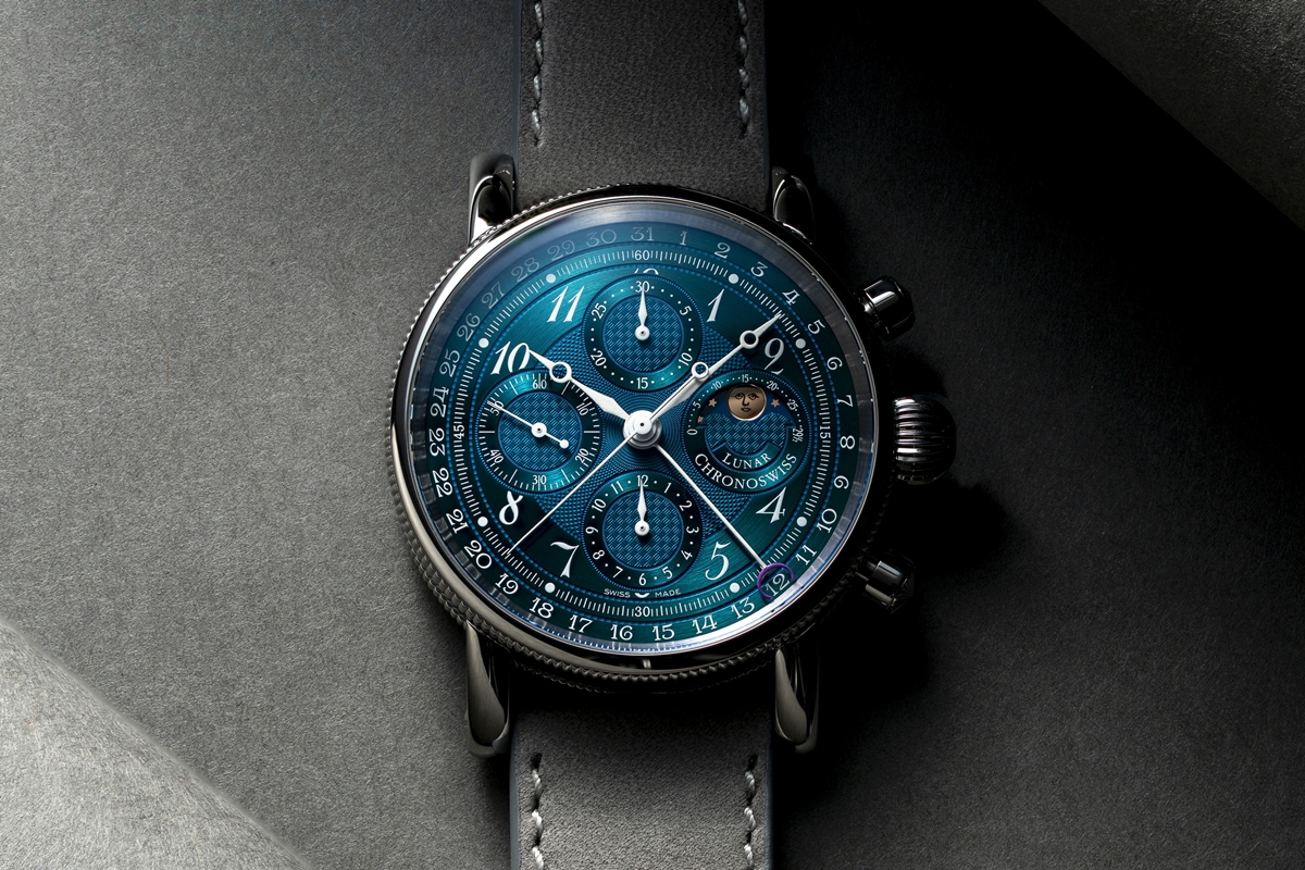 루나 크로노그래프 오로라는 다이얼 표면에 진공 상태에서의 가스 화학 반응을 통해 균일하고 단단한 막을 생성하는 CVD 코팅을 입혀 청록색의 깊이 있는 컬러를 구현했다. 스페이스 타이머 그래비티는 입체감 있는 6시 방향 문페이즈와 좌측의 달 표면을 떠오르게 하는 레이저 마감, 우측의 기요셰 패턴과 CVD 코팅을 조합한 다이얼의 대비가 눈에 띈다. 두 제품 모두 글라스백을 통해 푸른색으로 칠해진 로터와 무브먼트의 움직임을 감상할 수 있다. 그 밖에도 스트라이크 투, 리섹, 델피스, 펄스 원 등 크로노스위스의 핵심 컬렉션을 만나볼 수 있었다.