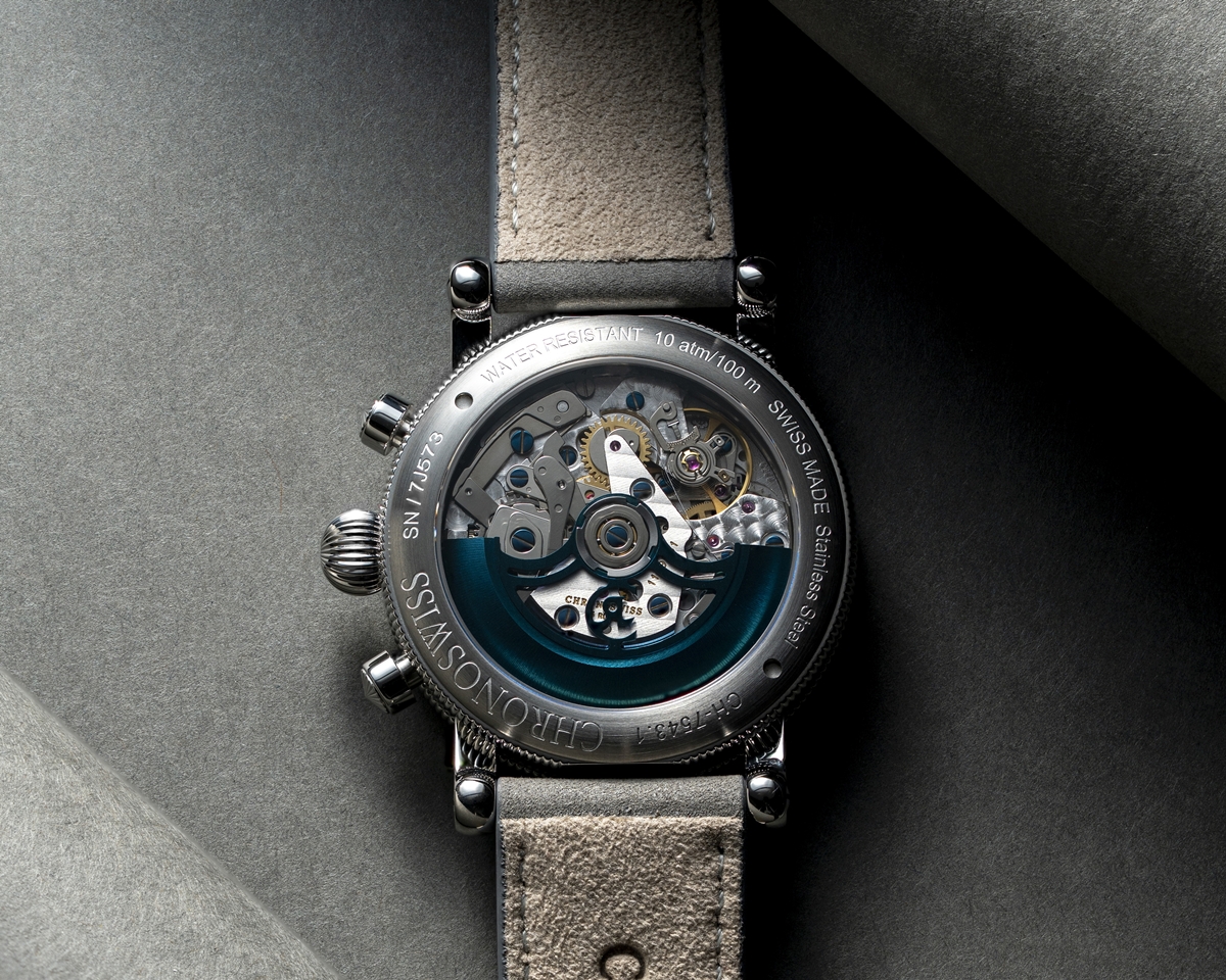 크로노스위스는 1983년에 독립 시계 제작자 게르트 뤼디거 랑(Gerd Rüdiger Lang)이 설립한 브랜드다. 시, 분, 초를 각기 다른 축으로 분리한 레귤레이터 디자인을 손목시계에 구현하며 사랑받아왔다. 2012년에는 지금의 CEO인 올리버 엡스타인이 크로노스위스를 인수했으며, ‘모던 메카니컬(Modern Mechanical)’이라는 철학 아래 브랜드를 운영하고 있다.