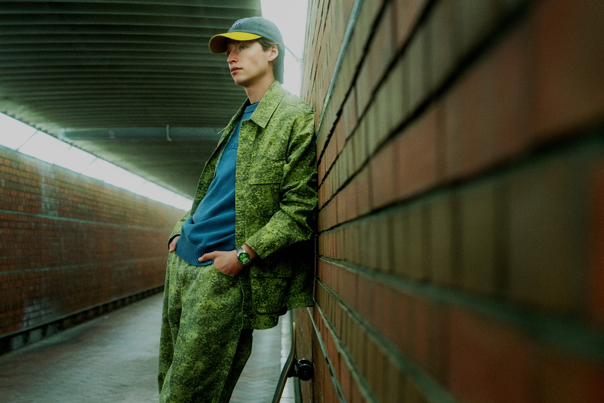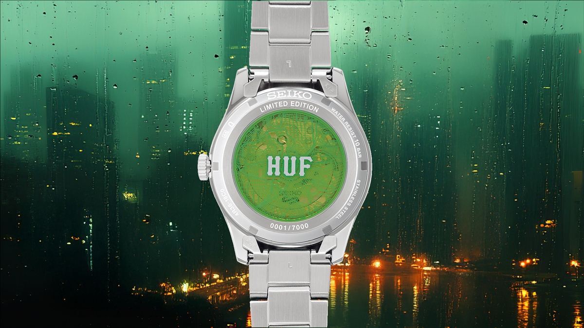 세이코가 허프와 협업하는 것은 이번이 세 번째다. 세 번의 협업 속 공통점을 꼽자면 모두 5 스포츠 컬렉션 안에서 이뤄졌다는 점과, 허프의 시그너처 컬러인 ‘허프 그린’을 적극 사용했다는 것이다. 특히 이번에는 세이코의 1970년대 아카이브 ‘타임 소나’에서 영감을 받은 디자인에 허프 특유의 감성을 더했다. 타임 소나는 다이얼 전반을 반투명으로 꾸려 데이-데이트 디스크를 드러낸 시계다. 신제품은 이를 계승하면서도 반투명 다이얼을 허프 그린 컬러로 재해석해 스트리트 분위기를 완성했다. 한자와 영문이 교차하는 요일 디스크와 12시 방향 제로 인덱스, 초침에 칠해진 오렌지 컬러 역시 이 시계의 포인트다.